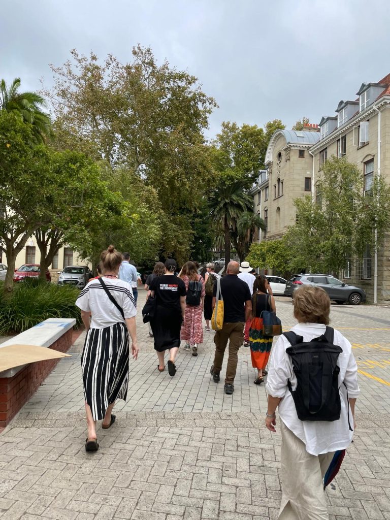 Our conversations were sparked by the many site visits of contested heritage. Each of the places we visited brought forward their own unique insights into how to deal with complicated colonial pasts and the present. Our visit began with the University of Cape Town Campus where Cecil Rhodes’ statue once stood before being taken down in the #RhodesMustFall movement. At Hiddingh Campus, we were introduced to the carefully composed exhibits of the Center for Curating the Archive. We went from learning about the development of new community-centered policies for treating ancestral remains in Iziko Museums of South Africa, to recognizing the crucial importance of grass-roots movements in the District Six Museum. At the latter museum, we were guided by Ms Susan Lewis, a former resident of District Six. Her story on the experience of forced removal from District Six made clear how present and personal the impact of racism in South-Africa was and still is.